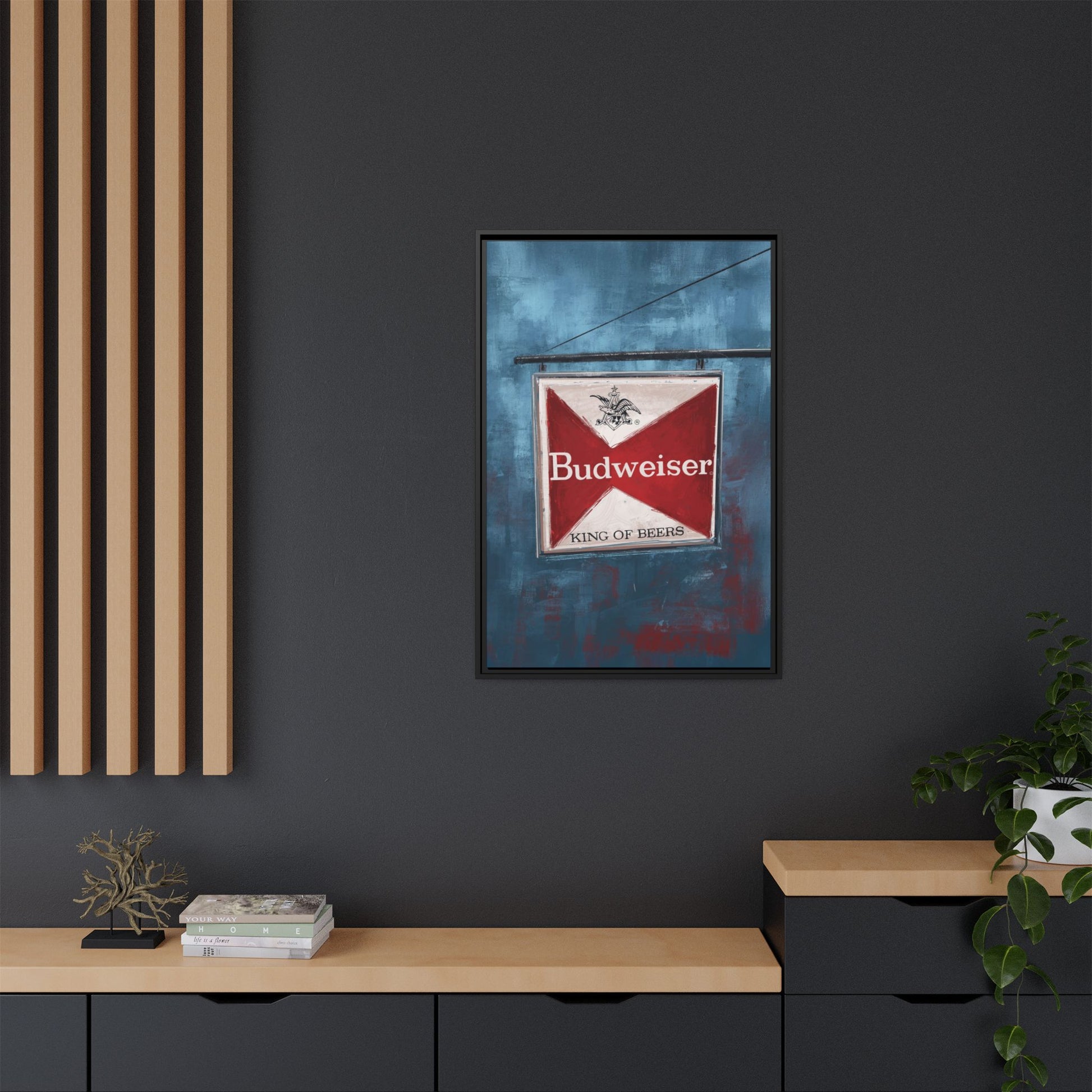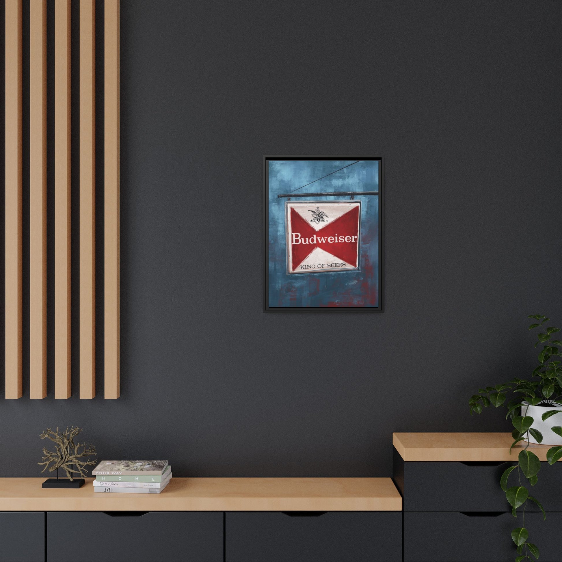 The King Hangs Here – Vintage Budweiser Bar Sign Framed Canvas Print