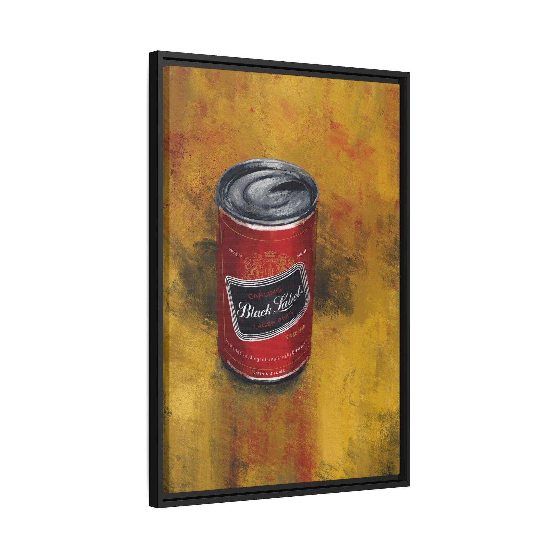 This striking canvas print captures the classic Carling Black Label beer can in all its retro glory—set against a rich, golden backdrop that radiates grit and charm. Whether you remember the crisp taste or just admire the design, this piece brings a timeless swagger to any home bar, man cave, or lounge.