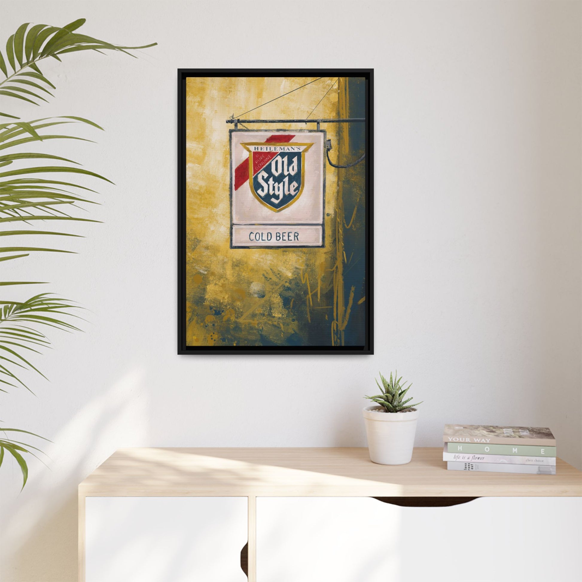 Blue & Gold Bar Sign - Gallery Wrapped Print with Black Frame