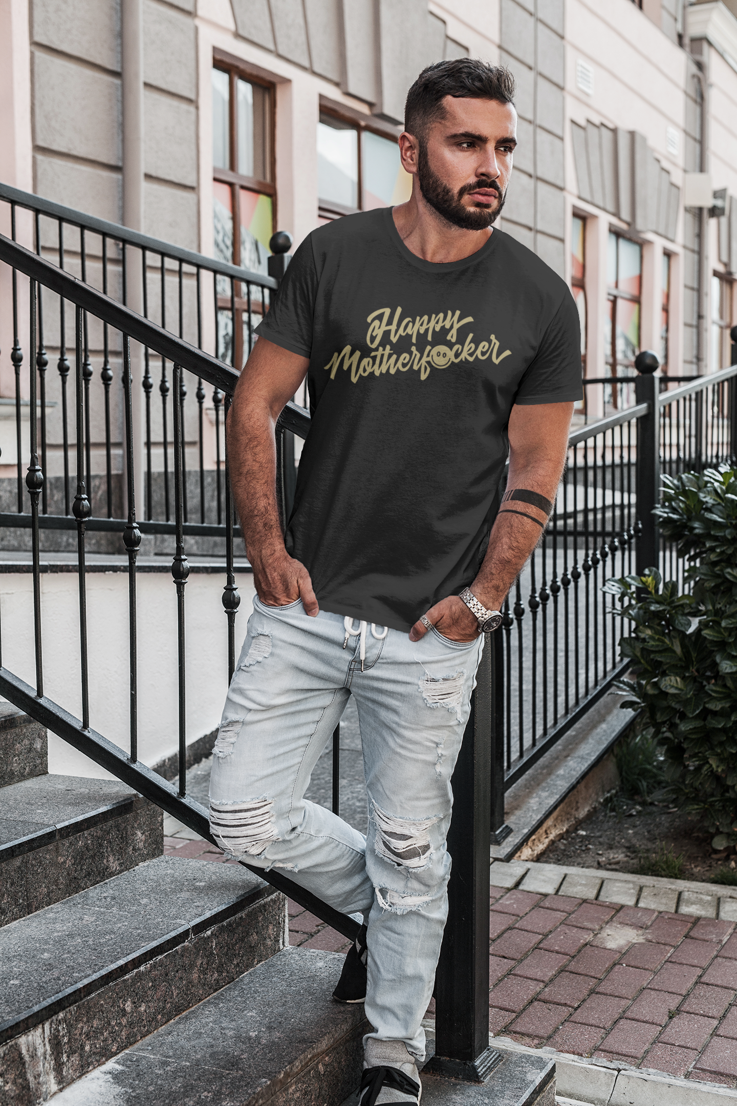 Clean, confident, and just cheeky enough to get a second look. This gold-on-black script tee keeps the message cool and the fit even cooler.