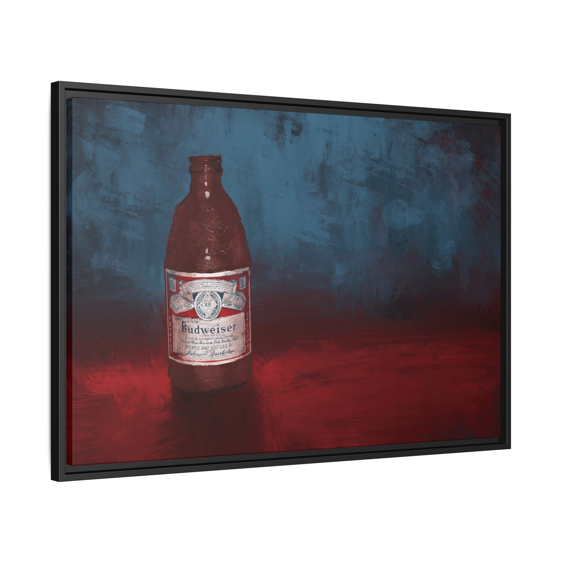 This vintage-style canvas print features an iconic brown bottle with bold red labeling, evoking the unmistakable look of one of America's most legendary brews. With rich tones, classic curves, and subtle wear, it feels pulled straight from a wooden bar top in a smoky Midwest tavern.